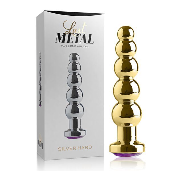 Plug anal produzido em metal (zamac), o que o torna mais pesado que os plugs anais comuns, com formato cônico para facilitar a penetração e pedra brilhante na base.